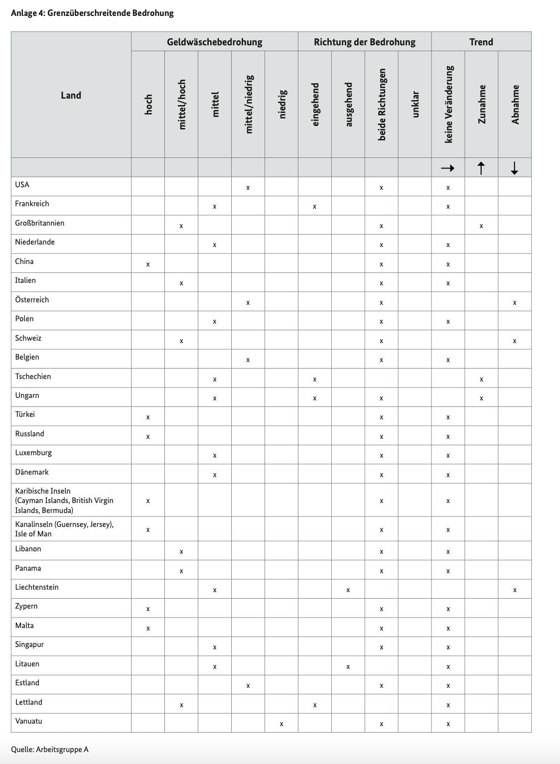 So far, the regulatory expectations are clear and well established. However, the final sentence of the BaFin circular introduces a layer of ambiguity. It states that, in addition, the findings in Annex 4 of Germany’s National Risk Assessment (NRA) on cross-border threats must be “taken into account appropriately.” This wording immediately raises questions. What exactly is Annex 4, and what does “appropriate consideration” mean in practice?