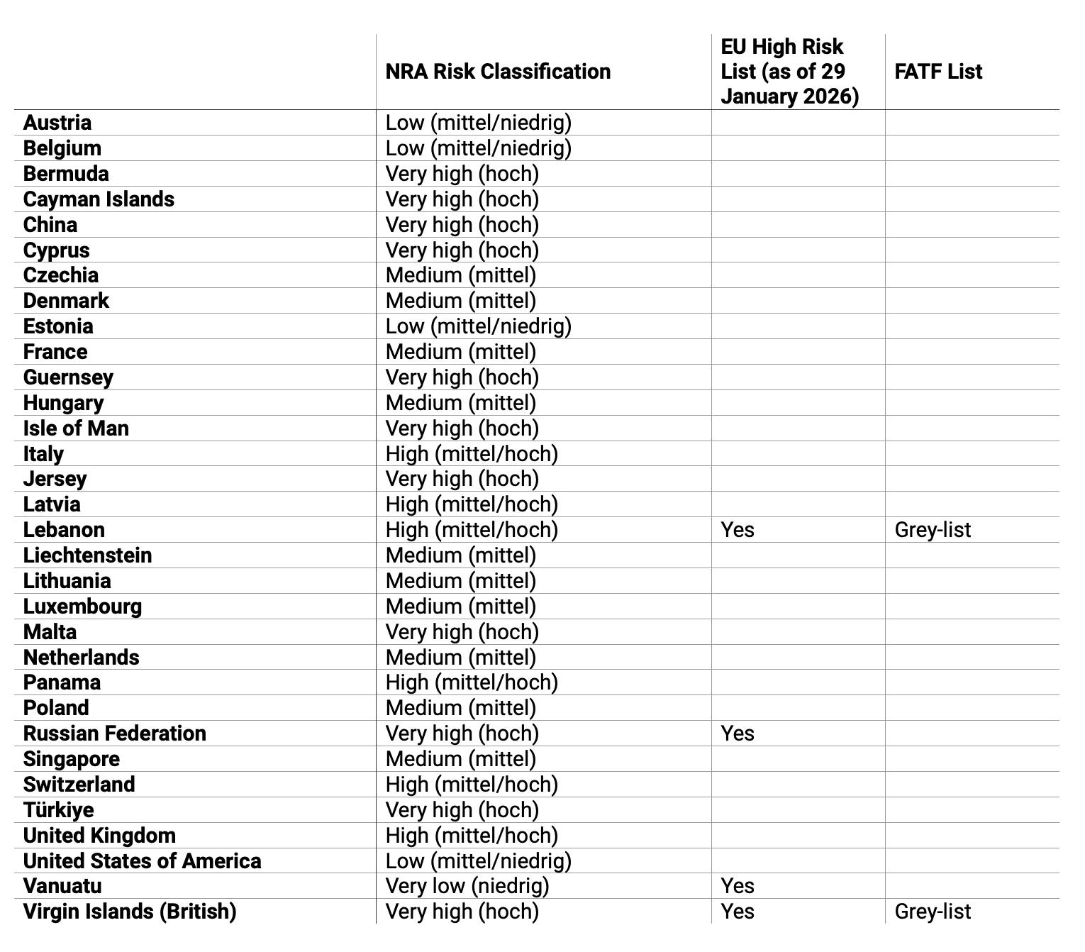 We would be very interested to hear how you deal with the German NRA country list in practice. How do you integrate it into your AML risk assessments, and does it materially change your compliance approach? Get in touch with us at [email protected].